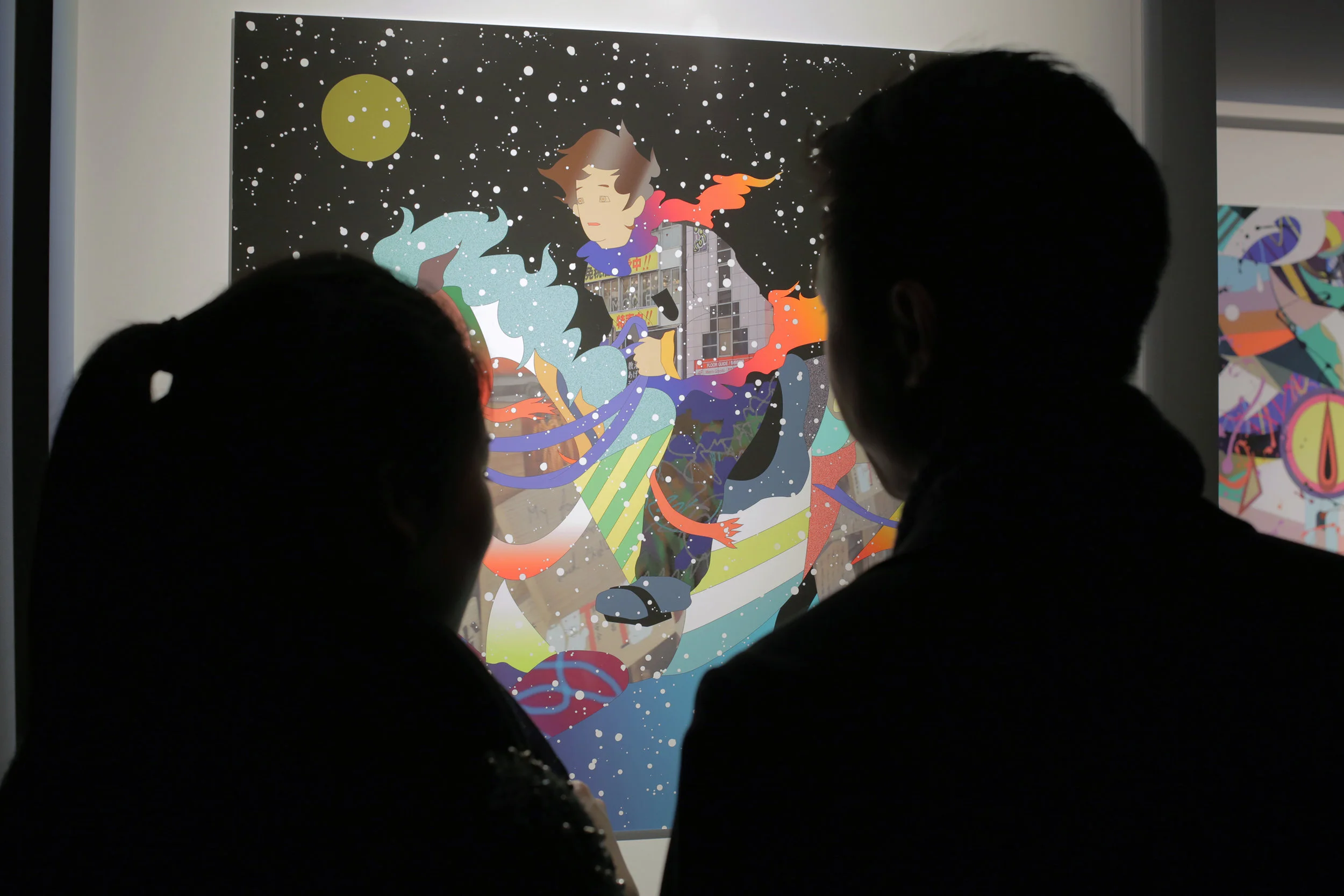 A camera crew followed Matsuyama as he created works for the opening of the ‘Made in 17 Hours’ exhibition at The Museum of Contemporary Art, Sydney with him hitting print as the last of the laptop's juice ran dry.